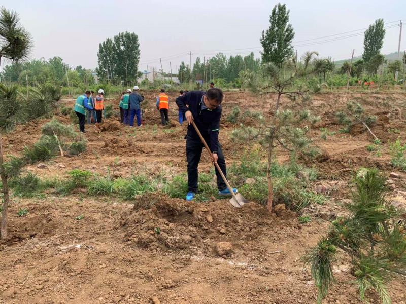 上午9時起,大家都熱情高漲,黨員帶領大家積極參與,按照高標準進行著有序的栽植,有的搬運樹苗,有的揮鍬鏟土,有的扶苗培土,相互分工協作,忙的不亦樂乎。放眼望去是一片熱火朝天的忙碌景象。一棵棵樹苗很快就拔地而起,煥發著勃勃生機。在一整天的忙碌中,共計種下近300棵黑松數。