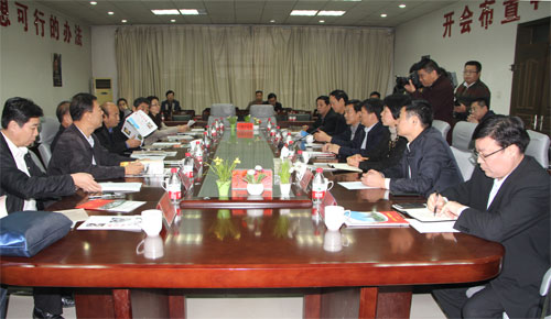 張立勇一行聽取省大代表、河南大地集團黨委書記張懷平匯報工作情況