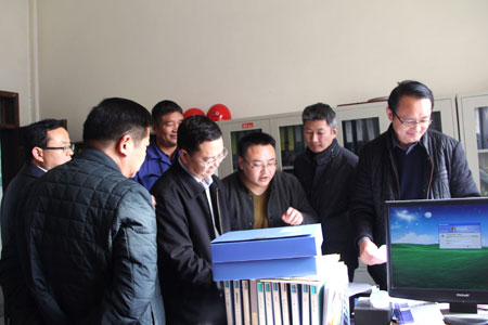 檢查組一行認真審閱檔案資料 |