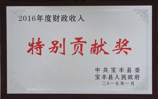 2017年1月13日,在中國共產(chǎn)黨寶豐縣第十二屆委員會第二次全體(擴大)會議上,大地集團被寶豐縣委、縣政府授予“2016年度財政收入特別貢獻獎”,并發(fā)放獎金10萬元。 2016年以來,面對復雜多變的經(jīng)濟形勢,日益激烈的市場競爭、越來越高的環(huán)保門檻,全體大地人凝心聚力,攻堅克難,實現(xiàn)了各項工作目標任務的齊頭并進,重點工作穩(wěn)步推進,年納稅額再創(chuàng)歷史新高。下一步,大地集團將以此為契機,創(chuàng)新思路,強化管理,積極探索,努力推動各項工作再上新臺階,實現(xiàn)新突破,為加縣域經(jīng)濟的發(fā)展作出新的更大的貢獻!
