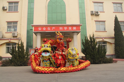 2月5日(農歷正月初九)上午,大地集團組織龍獅盤鼓隊參加寶豐縣第二十三屆民間藝術大賽。在縣城人民路縣委門前,“大地集團向全縣人們問好”的大紅條幅格外引人注目,精彩的龍飛獅舞不時引來觀眾的陣陣喝彩。 為搞好此項活動,大地集團聘請許昌市飛躍武術龍獅團前來參演,有聲有色,惟妙惟肖的表演為我縣民間藝術大賽增添了亮點,增加了藝術種類,活躍了現場氣氛。龍獅舞起來,鑼鼓敲起來,上下翻飛騰騰而起的巨龍搖頭擺尾,象征著大地集團的熱烈紅火的發展前景;雙獅追逐嬉戲,你追我趕,活靈活現,預示著大地集團的無限生機與活力;盤鼓高亢有力的宏音,好似催促著大地集團全體干部職工再向新目標進發。精彩的表演吸引了大批觀眾,將演出現場圍攏得水泄不通,一個個拿出手機拍照錄像……。 之后,全體演職人員乘車來到大地集團慰問演出,在大地公司門口擺開龍門陣,精彩的《龍騰獅躍》《雙獅鬧春》為廣大干部職工獻上一場精彩的視覺盛宴,贏來陣陣掌聲。