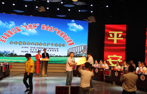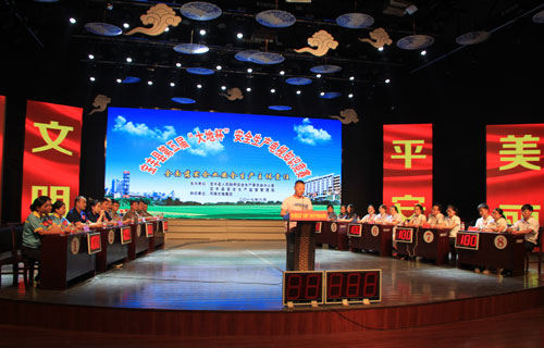 6月30日晚,由縣政府安委會、縣安監局主辦,大地集團協辦的寶豐縣第五屆“大地杯”安全生產電視知識競賽在縣廣電局演藝中心舉行。本屆知識競賽共有28支代表隊報名參賽。經過預賽、決賽的激烈角逐,伊犁公司榮獲一等獎。 衛計委、京寶焦化代表隊分獲二等獎。