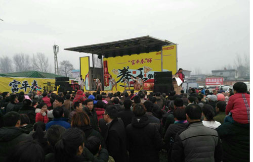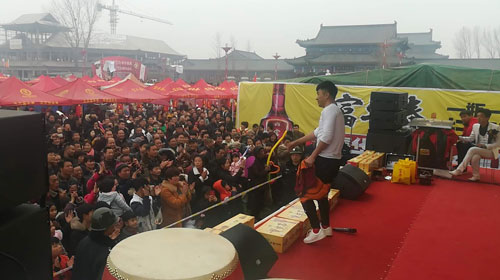 2月27日(農(nóng)歷正月十二)上午,筆者準備赴馬街一游。剛到路口,就被“七百年書韻唱響中國夢,九千歲賈湖再現(xiàn)富平春 ”“大地集團預(yù)祝2018馬街書會圓滿成功”的大紅氫氣球和條幅吸住了眼球。在富平春酒宣傳2號展臺前,圍滿了前來品酒、掃碼的群眾。“今天真得勁!還未到馬街就中了一瓶好酒”一位中年人高興得合不攏嘴。