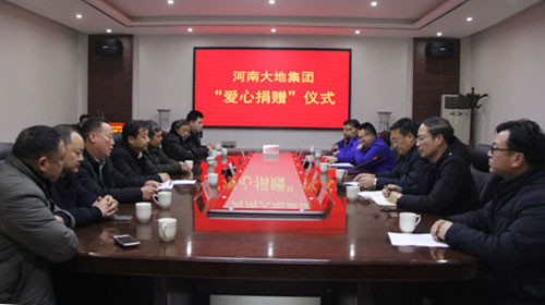 1月28日下午,河南大地集團(tuán)在中控三樓會(huì)議室舉行“愛(ài)心捐贈(zèng)”儀式。大地集團(tuán)分別為大營(yíng)鎮(zhèn)蠻子營(yíng)村、肖旗鄉(xiāng)嶺灣村、寶豐縣觀音堂滴水崖村捐贈(zèng)現(xiàn)金10萬(wàn)元。