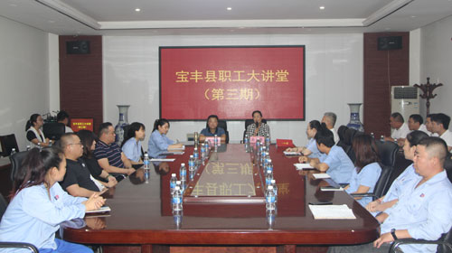 8月28日下午,在縣總工會黨組成員、副主席趙素敏的帶領下,縣總工會一行走進大地集團開展職工大講堂宣講活動。活動邀請縣總工會特聘法律顧問趙軍濤、國家二級心理咨詢師劉雨凝前來授課。