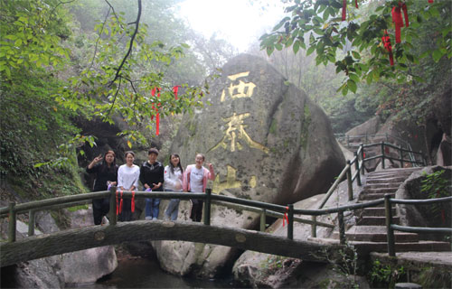 豐富多彩的幽洞、奇石、怪石與潺潺溪水相伴,形成了不同的獨特景觀:情侶峰、月亮灣、圣水湖、神女洞……,令人目不暇接,心曠神怡。以“緣、愛、情、家”為內容的石刻,默默地述說著這里曾經的故事。 在游玩中,大家抑制不住興奮的心情,一路爭相拍照留念,歡笑聲不絕于耳,讓身心在大自然中得到了很好的放松。