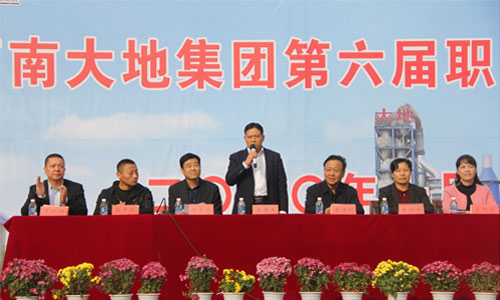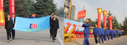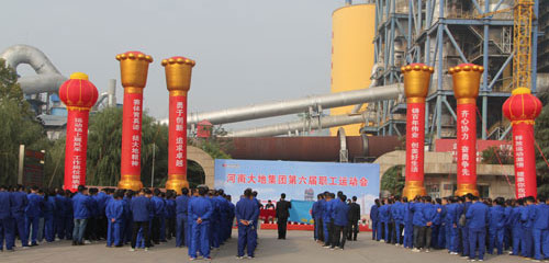 金秋十月,激情飛揚。10月17日上午,大地公司門前禮炮齊鳴,熱鬧非凡,分列兩側的大紅氣柱格外喜慶,河南大地集團第六屆職工運動會隆重開幕。寶豐縣人大常委會副主任、縣總工會主席崔建利,縣總工會黨組書記、常務副主席張艷峰等領導到會指導,集團總裁王國杰,黨委書記崔泉發等領導及來自各分公司、各部室500多名運動員參加了開幕式。