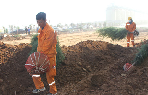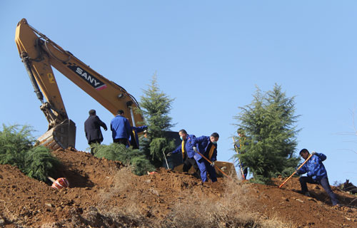 植樹現(xiàn)場(chǎng),馬達(dá)轟鳴,人聲鼎沸,十多臺(tái)挖土機(jī)忙碌著翻土挖坑。部門領(lǐng)導(dǎo)及黨員干部身先士卒,沖在前面,忙得不亦樂乎。廣大員工熱情高漲、干勁十足,或扛或抬、揮鍬培土、踩實(shí)壓緊、圍堰澆水,大家分工協(xié)作,配合默契,到處一派熱火朝天的勞動(dòng)場(chǎng)面,整個(gè)過程充滿歡聲笑語。