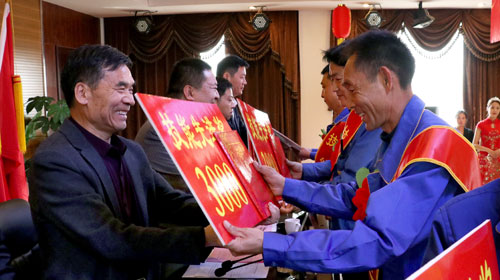 集團領導張懷平為獲獎者頒獎 紅花映笑臉,掌聲送勞模!3月27日上午,大地水泥公司北大門彩旗招展,氣球高懸,三樓會議室內鮮花怒放,掌聲雷動,河南大地集團2020年總結表彰暨2021年工作部署動員大會在這里隆重召開。來自各分公司的部分干部職工、受表彰的先進個人、先進集體及廣大優秀經銷商、領創地產、賈湖酒業的干部職工代表參加了會議。集團領導張懷平、張彪、王國杰、崔泉發等出席會議。