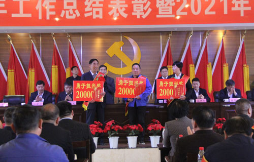 最后,董事長張彪作了重要講話,他充分肯定了集團2020年在扎實做好疫情防控的形勢下取得的優異成績,客觀分析了當前企業所面臨的形勢,并對建材、酒業、地產板塊的發展理念和遠景目標進行了展望,為廣大員工鼓勁加油,提振士氣。同時,提出了新的更高的要求。他強調:一、創新選人用人機制,打造優秀團隊。以干成事為導向,加大技能培訓、傳幫帶、師帶徒三大舉措,積極引進高等院校畢業生,推進人才梯隊建設,為企業高速發展奠定堅實的人才基礎。二、強化考核機制,改進考核制度。堅守言必信,行必果,用生命捍衛承諾的核心價值觀,實現結果導向,年度目標量化,改變固有的考核制度,完善績效考核方案,進行月考核、季考核、半年考核和年度考核,嚴格獎罰激勵機制,完成各項生產指標。三、弘揚大地文化,提升企業活力。對企業文化進行重新梳理和升級,滲透到集團公司的各個層面,認真落實第一責任人制度,把不說不行的理由、只想可行的辦法等文化理念貫穿于生產經營全過程。強化一把手考核,目標能否落地,工作能否干好,是各單位、各部門一把手不可推卸的責任。四、引領綠色發展,做到大地先行。要加大環保投資力度,積極引進先進的環保工藝、技術,達到環保績效A級企業,引領國內同行業綠色發展水平。五、圍繞客戶需求,提升服務水平。樹立客戶至上理念,以產品質量為根本,將客戶需求導向貫穿于市場、研發、銷售、制造、服務等全流程,創新服務意識,讓客戶真正體會到放心、貼心、省心的全新服務。六、整合三大板塊資源協同,提升集團整體發展質量。建材、酒業、地產三大板塊要相互促進,優勢互補,融合發展,形成獨具特色的鏈條模式,增強企業的整體競爭力。七、創業難守業更難,牢記艱苦奮斗,實現二次創業。牢記老一代創業初心,創業艱苦。創業之初,大家不講條件,不怕吃苦,一心一意干成事,干好事,才成就了大地集團今日的輝煌。成績來之不易,集團上下要備加珍惜,更要以強烈的責任心、事業感,推動各個板塊實現業績大提升、新跨越。要有空杯心態,成績只屬于過去,跨越更需擔當。新的一年要翻篇歸零從頭干,二次創業再出發,堅持創業精神,牢記艱苦奮斗,狠抓各項管理,反對鋪張浪費,實現“大地速度”,全面完成集團的各項目標任務。