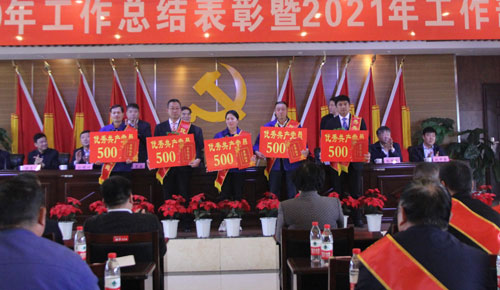 優秀經銷商上臺領獎 會議對先進個人、先進集體、勞動模范及優秀經銷商進行了表彰獎勵。先進典型代表分別發表了獲獎感言。集團分管領導及各分公司負責人就如何做好2021年的工作作了表態發言。
