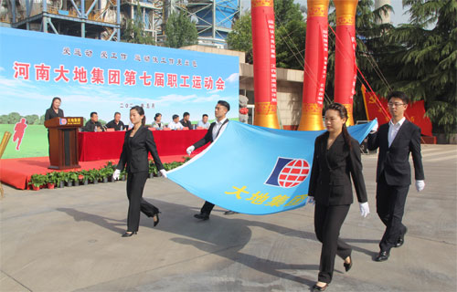 激情五月,活力無限。5月8日上午,大地公司門前彩旗招展,禮炮齊鳴,6支大紅氣柱分列兩側,顯得格外喜慶,河南大地集團第七屆職工運動會隆重開幕。縣總工會黨組書記、常務副主席張艷峰到會指導,集團總裁王國杰、副總裁陳志云等領導及來自各分公司、各部室500多名運動員參加了開幕式。