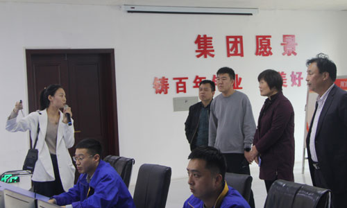 隨后,姚桃葉一行來到中央控制室,集團領導匯報了整個干法水泥生產線的工藝流程、環保工作投入情況,重點闡述了集團公司城市生活污泥處置、智能化皮帶廊道、鐵路專用線等方面的建設和運行情況。