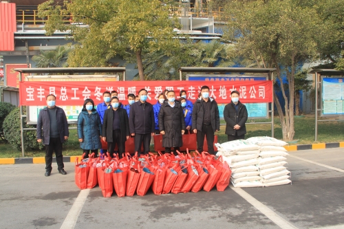 歲寒情深關愛暖心,疫情當前寒冬送暖。1月12日上午,縣委副書記郭杰,縣三級調研員、縣總工會主席崔建利,縣四級調研員張艷峰,縣工會黨組書記、常務副主席胡恩超一行頂冒著嚴寒深入大地水泥公司,開展冬送溫暖、關愛職工慰問活動,為廣大職工送來大米、棉被等物資,集團總裁王國杰、副總裁兼大地公司總經理趙中要等領導陪同。