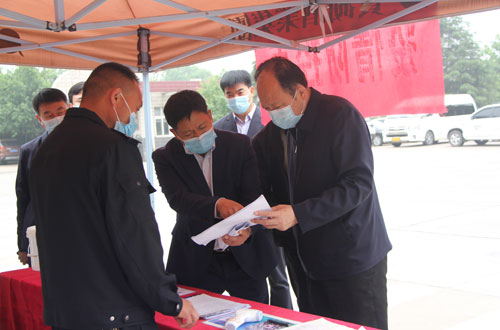 5月12日上午,縣委副書記、縣長王代強帶領(lǐng)縣政府辦、工信局、交通運輸局等相關(guān)單位負責人到大地集團調(diào)研督導疫情防控及安全生產(chǎn)工作。縣產(chǎn)業(yè)集聚區(qū)管委會主任王森鵬、集團總裁王國杰等領(lǐng)導陪同督導。