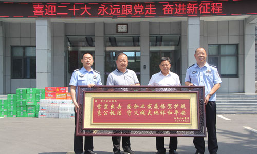 近年來,縣公安局緊緊圍繞經濟社會發(fā)展大局,充分發(fā)揮職能作用,積極助推改善營商環(huán)境,嚴厲打擊破壞企業(yè)生產經營秩序的違法犯罪行為,幫助企業(yè)消除治安隱患,全力為企業(yè)發(fā)展保駕護航。集團總裁王國杰對公安民警為維護企業(yè)正常經營秩序所做的工作及辛苦付出表示衷心的感謝。同時表示今后將全力支持和配合好公安工作,共同譜寫平安、穩(wěn)定、和諧的警企合作新篇章。