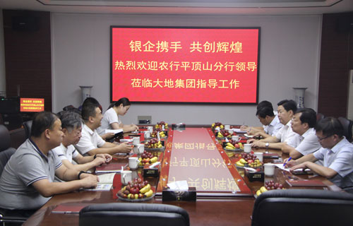 7月29日下午,農行平頂山分行黨委書記、行長王逢樂,農行寶豐縣支行黨委書記、行長謝海峰等一行到大地集團考察指導。集團領導張懷平、董事長張彪、副總裁張中民等領導全程陪同。