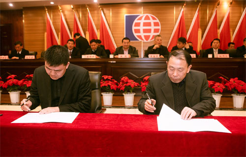 會上,集團董事長、總裁、經營班子、各分管業務負責人層層簽訂了《2023年度工作目標責任書》。