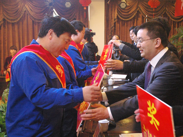 2013年3月16日上午,大地公司北會議室內座無虛席、掌聲雷動,到處洋溢著喜慶祥和氣氛,大地集團2012年度工作總結暨表彰大會隆重召開。副縣長魏學君、縣總工會主席郭鵬飛、集團領導、受表彰的先進工作者、優秀經銷商、供應商及部分職工代表共700多人參加了會議。 會議由黨委副書記王福文主持。會議首先由集團董事長張彪作工作報告。報告對2012年的工作進行了系統回顧總結,充分肯定了所取得的成績,同時指出了工作中存在的不足和問題,分析了當前面臨的形勢和任務,并對今年的目標任務提出了明確的思路和要求。對做好2013年的工作,張董事長強調重點抓好7個方面的工作:一、堅持強管理、促銷售、創高產、增效益、勇創新的指導方針。二、積極引進先進生產管理人才和技術人才,創造先進的管理模式,加強與先進企業的對標管理,促進生產制度和管理制度的創新,使經濟技術指標達到或超過同行業的先進水平。三、堅持“至高品質、至誠服務”的宗旨不動搖,堅持走名牌銷售戰略,充分發揮大地水泥的品牌優勢,鼓勵培育專營經銷商,并向2級、3級網點發展,牢固占領現有市場,努力拓展新市場。四、加快現有項目的建設進度,確保按計劃竣工投產。五、繼續堅持“人才是企業第一資源”的指導思想,根據企業發展需要,制訂公司中長期人才供需規劃,建立人才數據庫,為企業快速發展提供人才保障。六、不斷充實企業文化核心內容,將良好的企業文化滲入企業肌體,形成一個風氣正、人心齊、奮發向上、包容和諧的良好氛圍,為企業的快速發展提供動力和正能量。七、進一步綠化、美化廠區,做好廠區環境整治,打造環境最美的花園式企業。 會上,集團總裁崔泉發宣讀了“關于表彰2012年度先進集體和先進個人及優秀經銷商、供應商的決定”。對榮獲勞動模范、技術能手、忠誠衛士、先進集體、先進工作者代表和優秀經銷商、供應商代表進行了頒獎。先進單位代表、先進工作者代表、優秀經銷商代表分別作了典型發言。 最后,魏學君副縣長作了重要講話。他說,大地集團已連續五年蟬聯寶豐縣納稅第一名,特別是2012年,在建材市場形勢嚴峻的情況下,仍實現納稅達1.4億元,連續兩年成為我縣納稅超億元企業。縣委、縣政府將一如既往地高度關注大地集團的發展,努力為大地集團營造更加寬松、更加良好的經濟發展環境,堅決做好大地集團發展的堅強后盾。希望大地集團搶抓機遇,創新科技,做大做強,為縣域經濟的發展作出新的更大的貢獻。