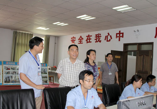 8月3日上午,中國社會科學院財經戰略研究院研究員、服務經濟研究室主任夏杰長在縣委常委、常務副縣長馬麗,縣政府黨組成員亢鵬舉等領導的陪同下到大地公司調研,集團黨委副書記閆中安、大地公司總經理王永普等領導熱情接待了夏主任一行。 在中控室,大地公司總經理王永普講解了干法水泥生產線從石灰石均化、原料粉磨到熟料燒成、水泥粉磨等生產工藝流程,夏杰長一行詳細了解了余熱發電等情況,他們對我公司先進的工藝技術及在節能減排綜合利用方面取得的成效給予了高度評價和充分肯定。