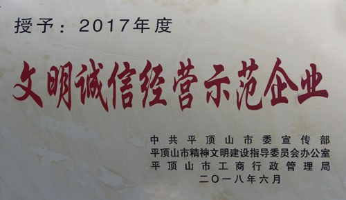 首頁 >> 走進大地 >>資質榮譽 >> 2017年度文明誠信經營示范企業