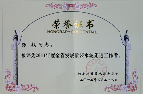 首頁 >> 走進(jìn)大地 >>資質(zhì)榮譽(yù) >> 2011年度全省發(fā)展散裝水泥先進(jìn)工作者