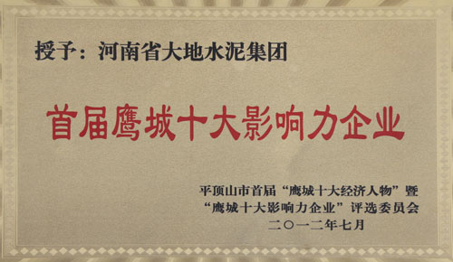 首頁 >> 走進大地 >>資質榮譽 >> 首屆鷹城十大影響力企業(yè)