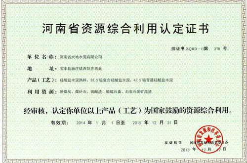首頁 >> 走進(jìn)大地 >>資質(zhì)榮譽(yù) >> 河南省資源綜合利用認(rèn)定證書